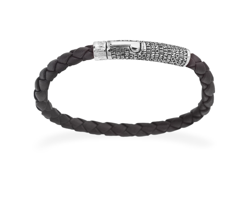 Bracciale UNISEX amen, brno05b-m, collezione padre nostro, in vera pelle intrecciata color NERA con chiusura in bronzo e incisione pater noster, misura 19.5