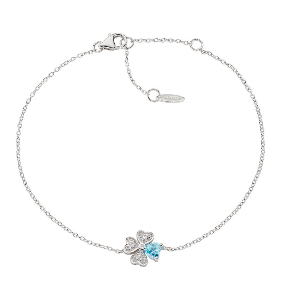 Bracciale donna amen, Brqubac, collezione quadricuore, in argento 925 con zirconi bianchi e acqua marina, lunghezza 16cm+3cm