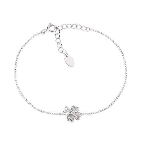 Bracciale donna amen, Brqubb, collezione quadricuore, in argento 925 con zirconi, lunghezza 16cm+3cm