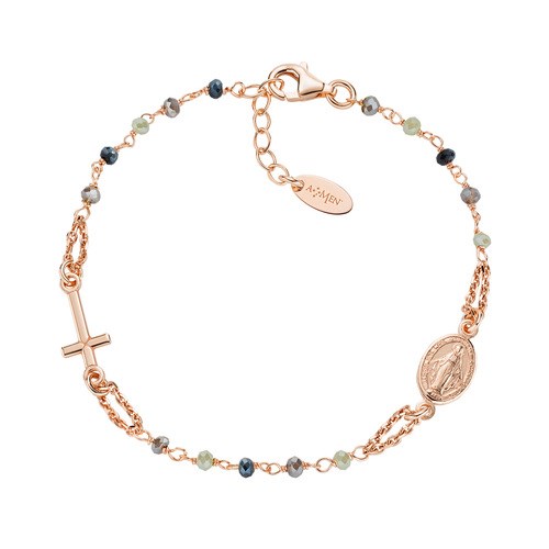 Bracciale donna amen, BRO10RGTOVE3, collezione rosari, in argento 925 rosato con cristalli, lunghezza 20cm regolabile