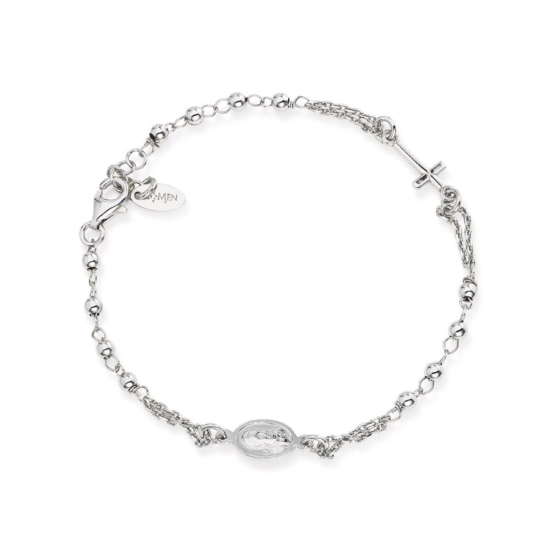Bracciale donna amen, BROB3, collezione rosarium bracciale, in argento 925 rodiato, lunghezza 18cm regolabile