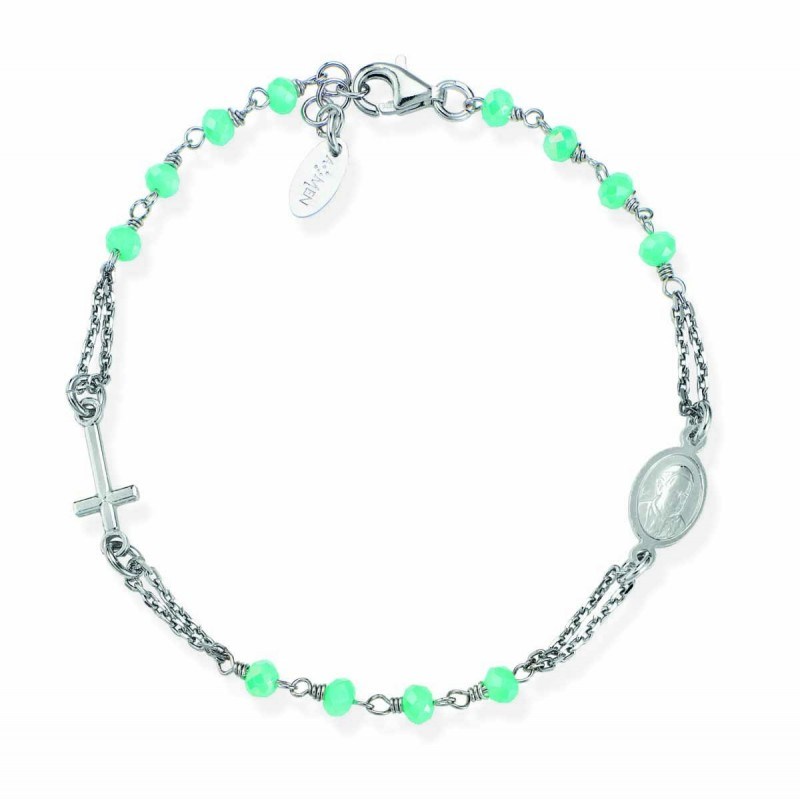 Bracciale donna amen, BROBT3, collezione rosarium bracciale, novità; in argento con cristalli verde , lunghezza 18+2cm