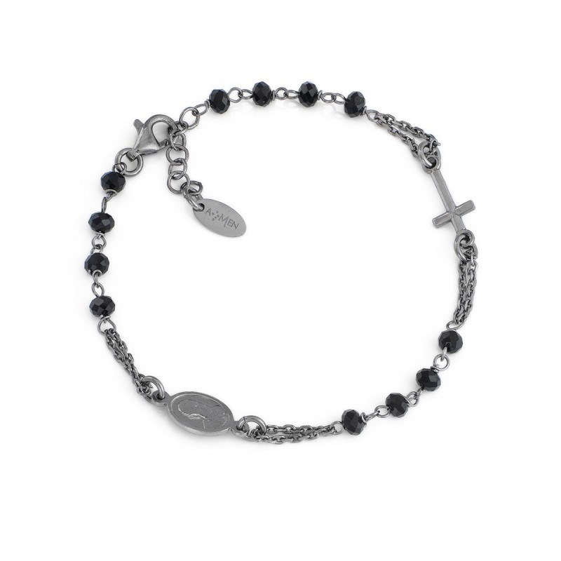 Bracciale unisex amen, Bronn3, collezione rosarium , novità , in ag925 brunito Con cristalli lungh.