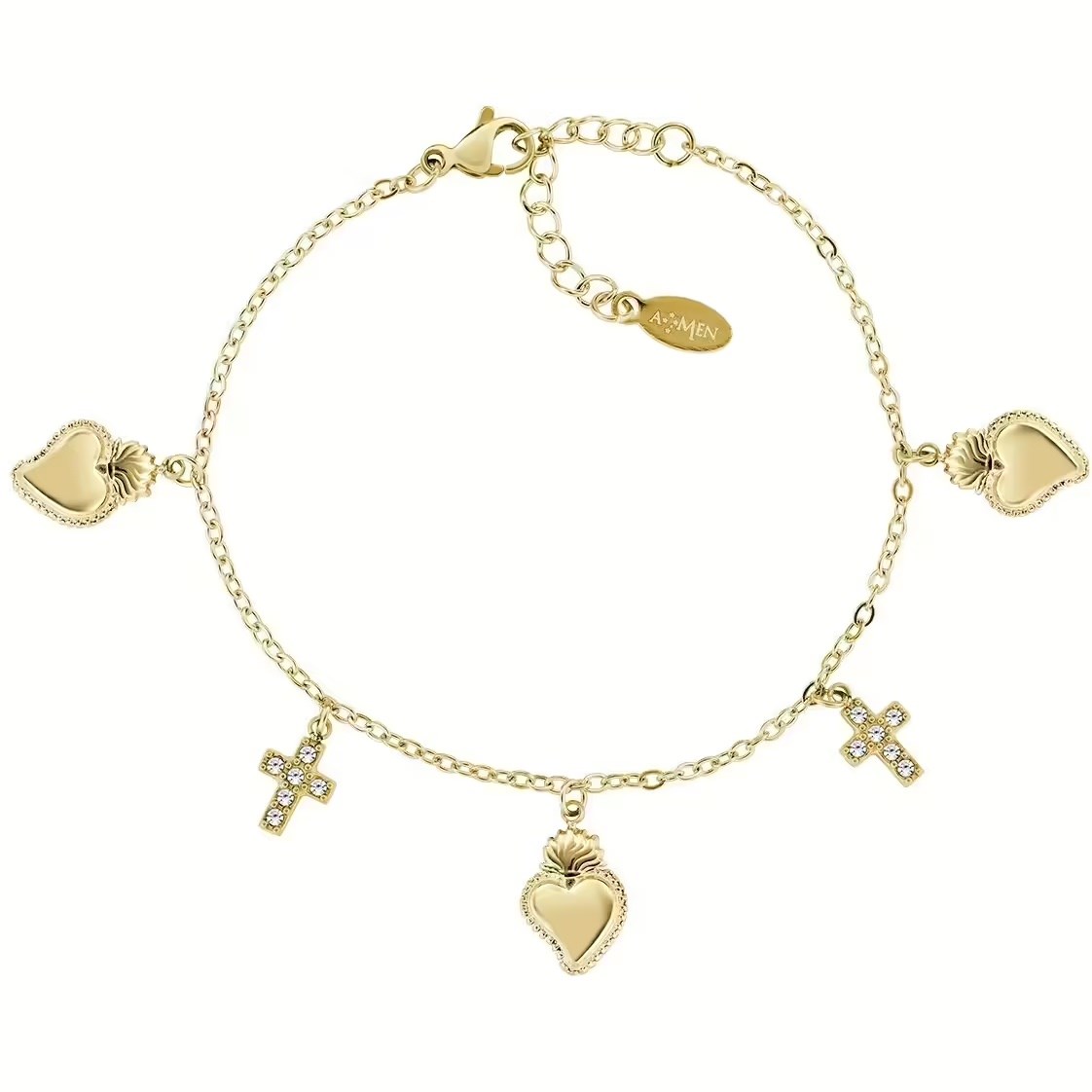 Bracciale donna amen, ACBR818392G, collezione sacro, in acciaio dorato e zirconi, Lunghezza regolabile da 16 cm a 19 cm