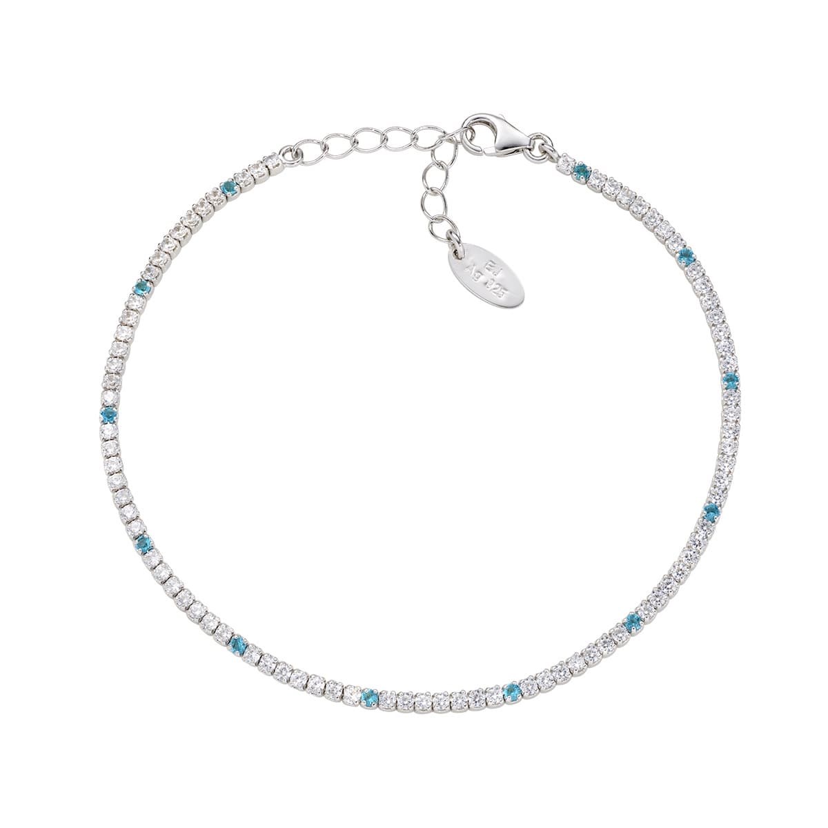 Bracciale unisex amen, BT1B7BAC17, collezione tennis, in argento 925 rodiato con zirconi acquamarina e bianchi da 1, 5 mm.