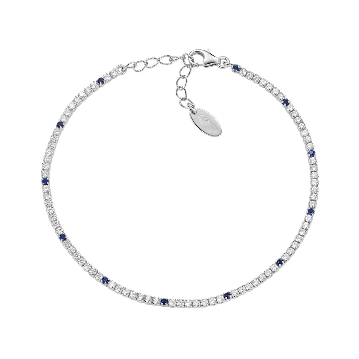 Bracciale unisex amen, BT1B7BBL17, collezione tennis, in argento 925 rodiato con zirconi blu e bianchi da 1, 5 mm.