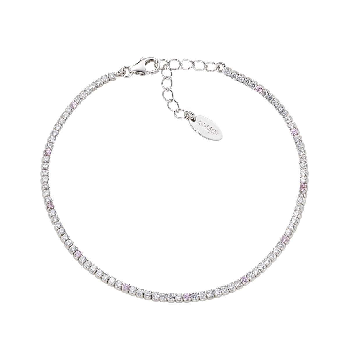 Bracciale donna amen, BT1B7BRO17, collezione tennis, in argento 925 rodiato con zirconi rosa e bianchi da 1, 5 mm.
