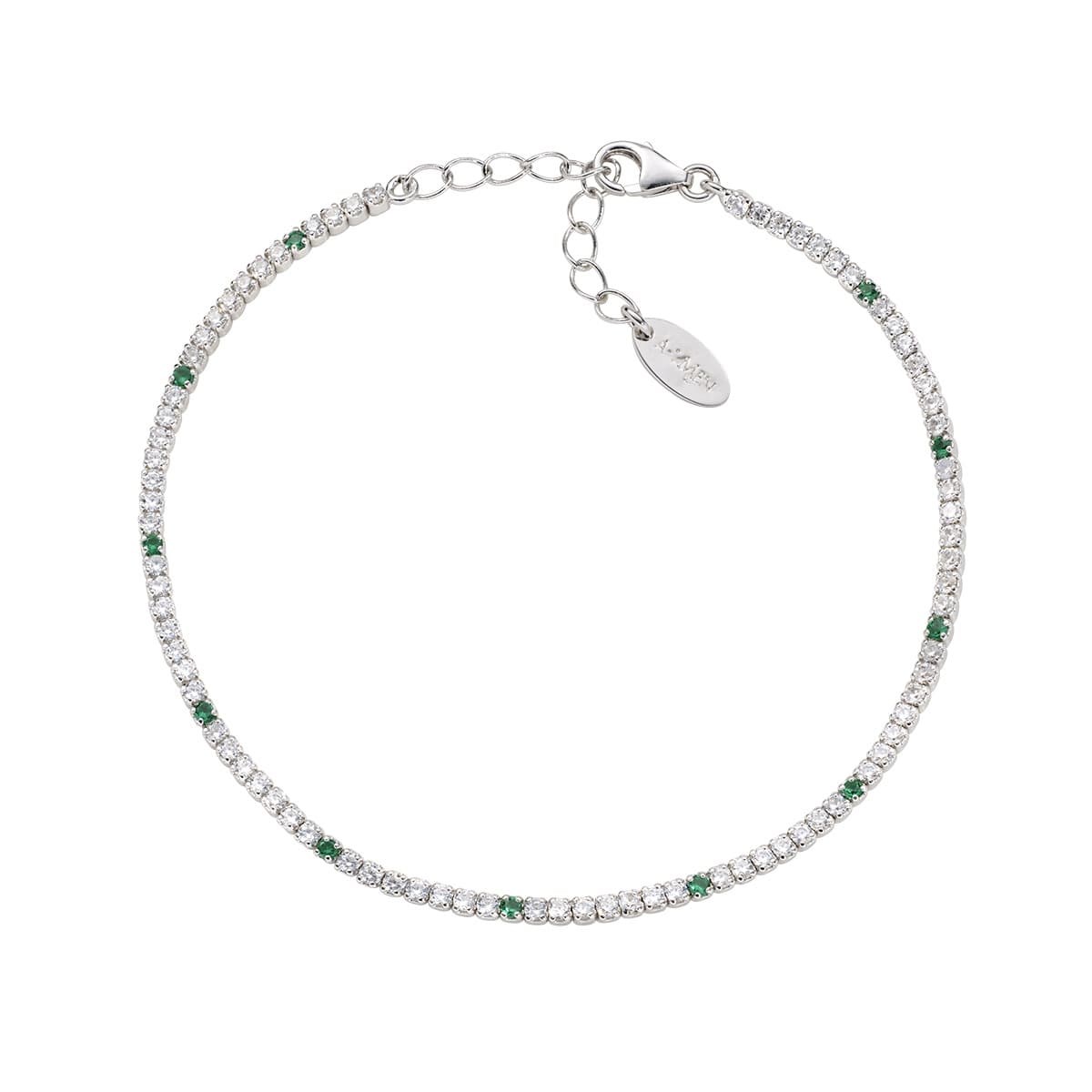 Bracciale unisex amen, BT1B7BVE17, collezione tennis, in argento 925 rodiato con zirconi verdi e bianchi da 1, 5 mm.