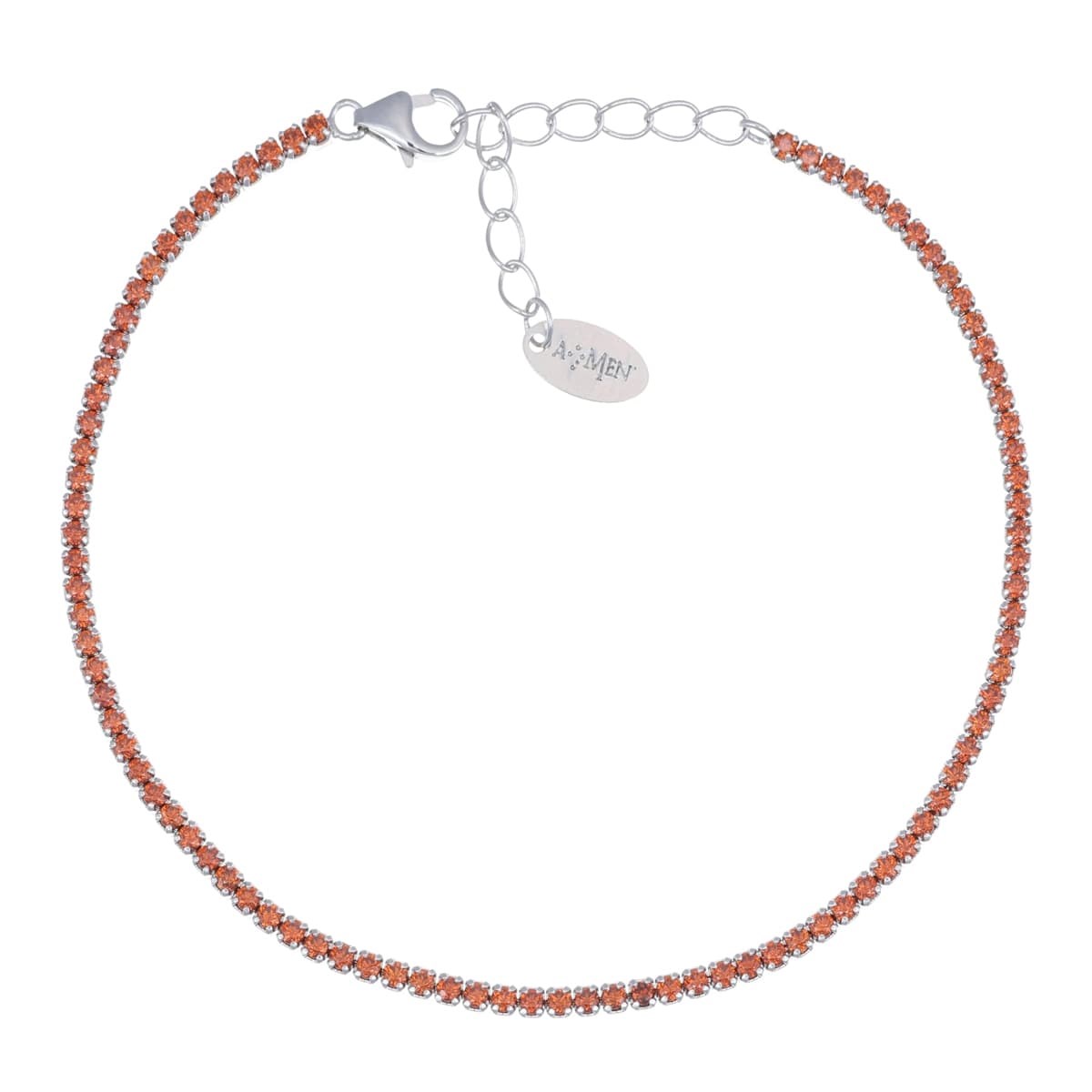 Bracciale unisex amen, BT1BAR17, collezione tennis, in argento 925 rodiato con zirconi arancioni da 1, 5 mm.Lunghezza regolabile da 17 a 20, 5 cm con catenina di allungo e chiusura a moschettone.