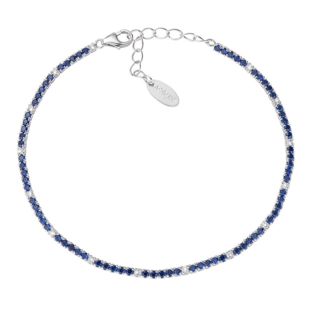 Bracciale donna amen, BT1BBLB17, collezione tennis, in argento 925 con zirconi, lunghezza regolabile da 17cm a 20cm