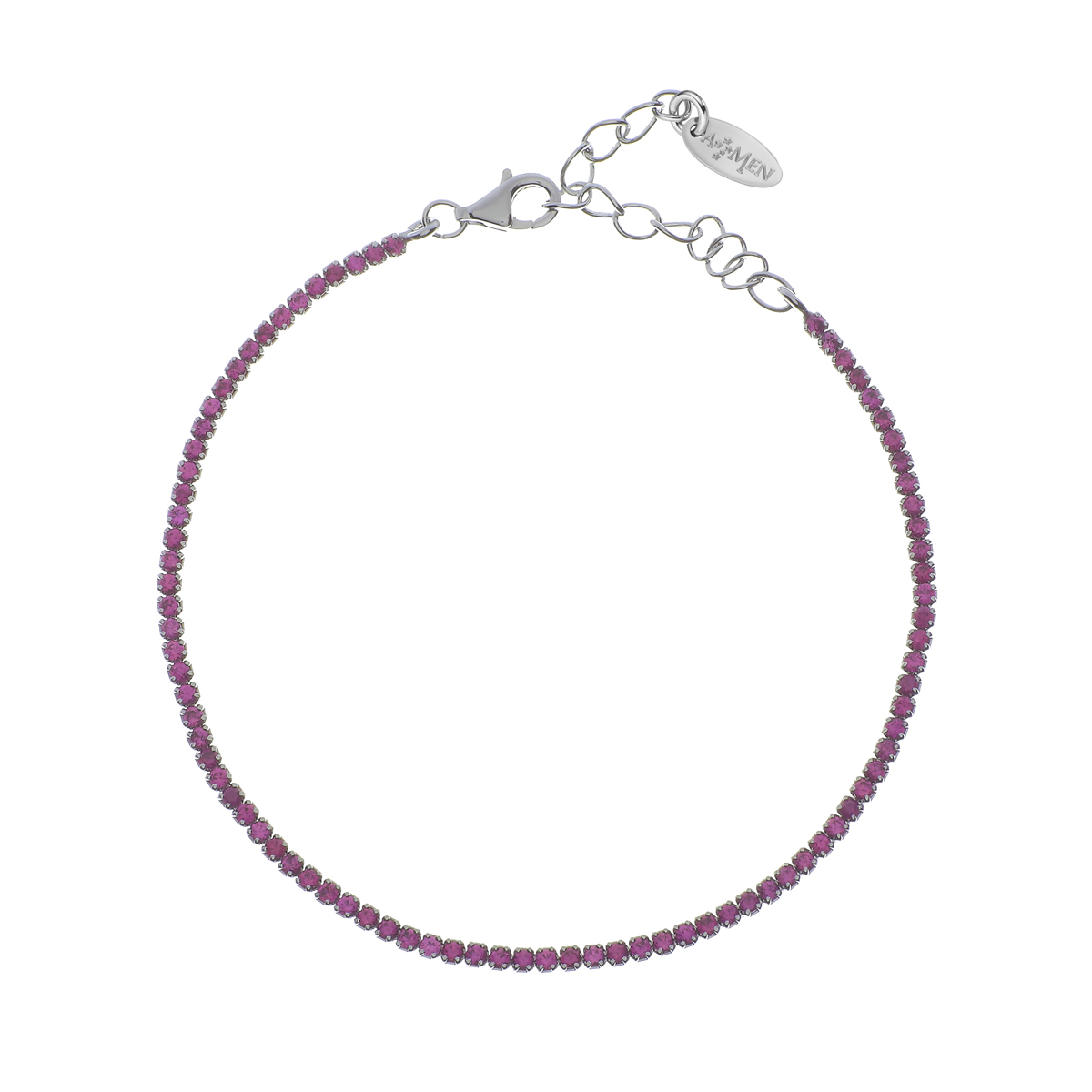 Bracciale donna amen, BT1BR17, collezione tennis, in argento 925 rodiato e zirconi fucsia, lunghezza 17cm+3, 5cm