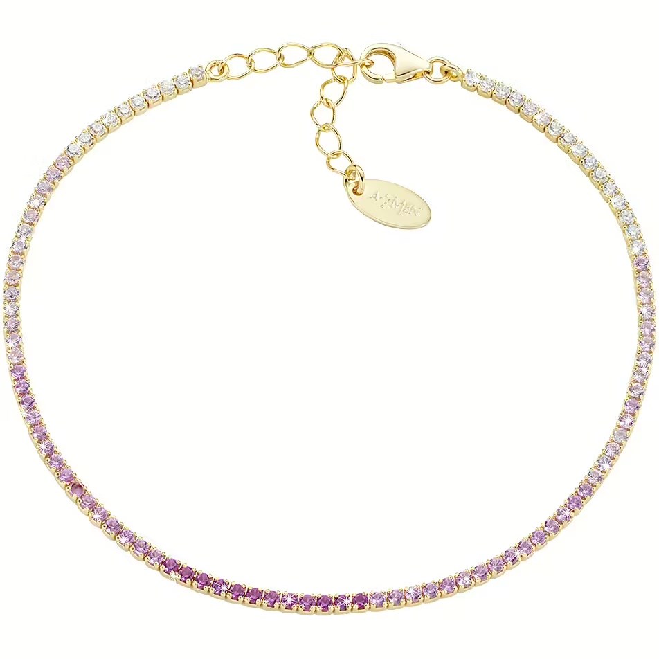 Bracciale donna amen, BT1DEGFU17, collezione tennis, in argento 925 dorato e zirconi multicolor, misura 17cm+3cm