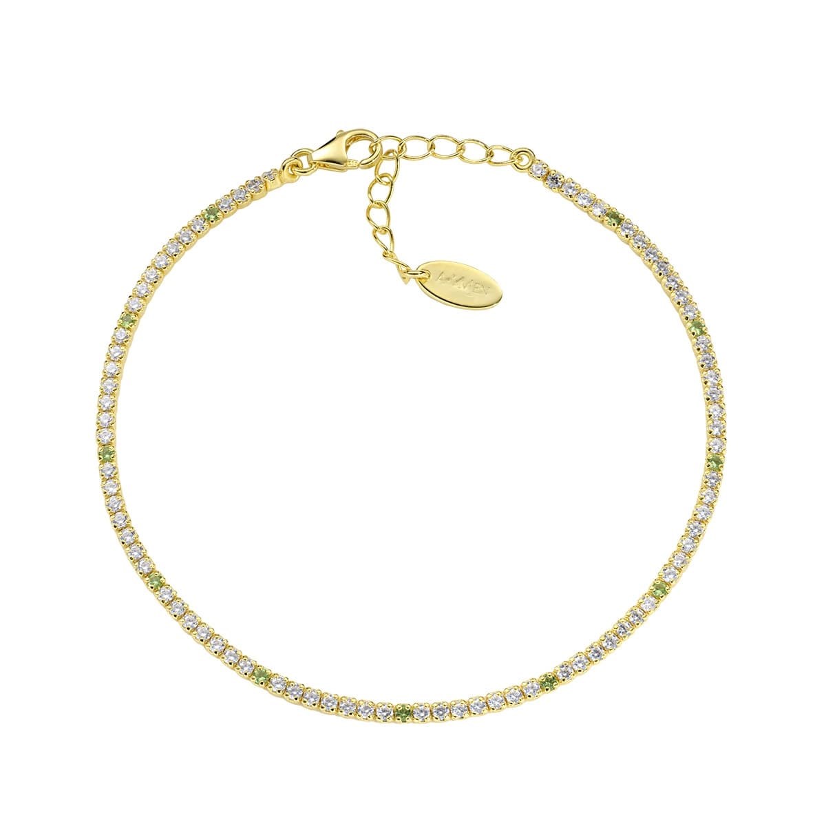 Bracciale unisex amen, BT1G7BOL17, collezione tennis, in argento 925 rodiato con zirconi verde oliva e bianchi da 1, 5 mm.
