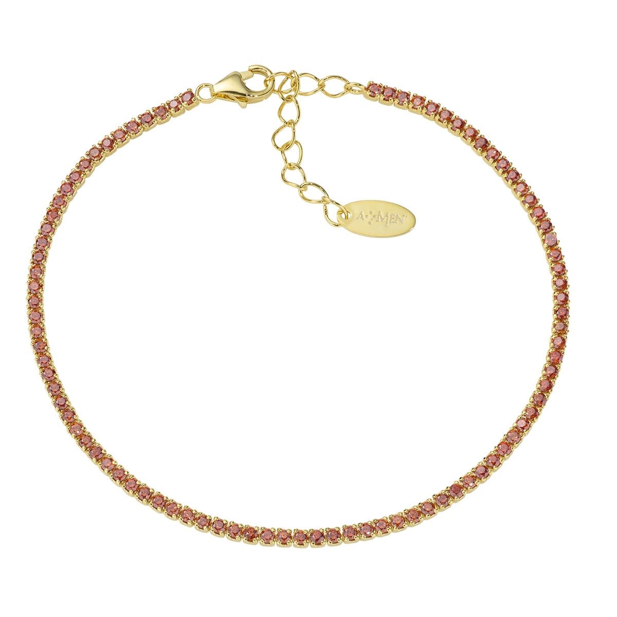 Bracciale unisex amen, BT1GAR17, collezione tennis, in argento 925 dorato con zirconi arancioni da 1, 5 mm.Lunghezza regolabile da 17 a 20, 5 cm con catenina di allungo e chiusura a moschettone.