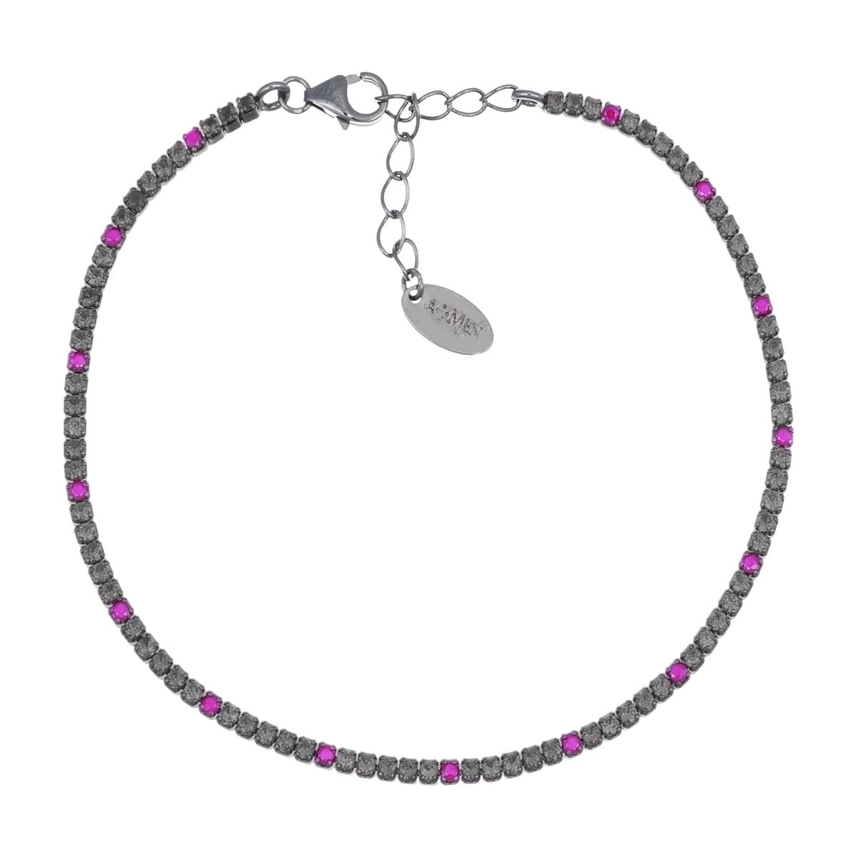 Bracciale unisex amen, BT1NRN17, collezione tennis, in argento 925 nero rutenio con zirconi neri e rossi da 1, 5 mm.Lunghezza regolabile da 17 a 20, 5 cm con catenina di allungo e chiusura a moschettone.