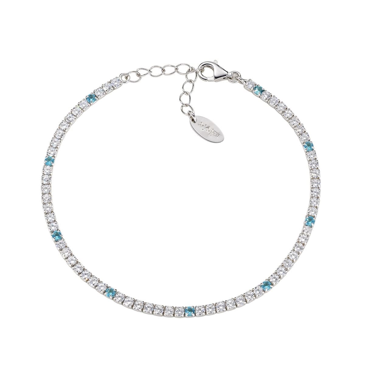Bracciale unisex amen, BT7BACB16, collezione tennis, in argento 925 rodiato con zirconi acquamarina e bianchi da 2 mm.