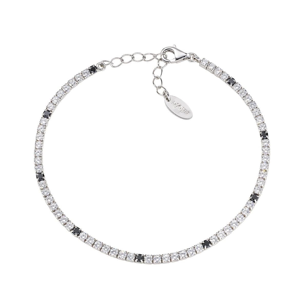 Bracciale unisex amen, BT7BNB16, collezione tennis, in argento 925 rodiato con zirconi neri e bianchi da 2 mm.
