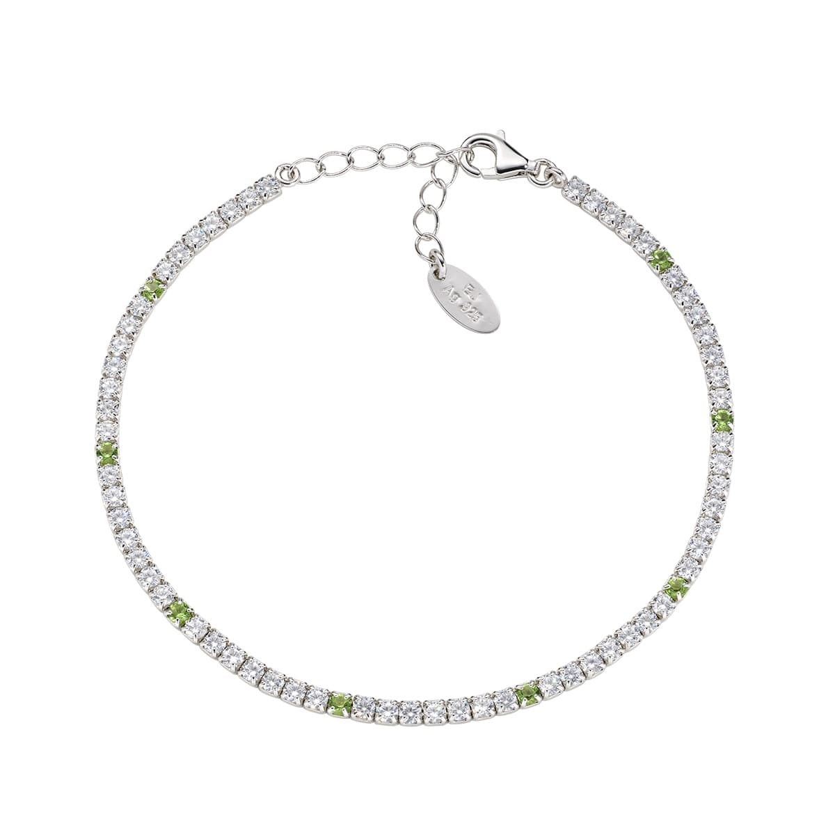 Bracciale unisex amen, BT7BOLB16, collezione tennis, in argento 925 rodiato con zirconi verdi oliva e bianchi da 2 mm.