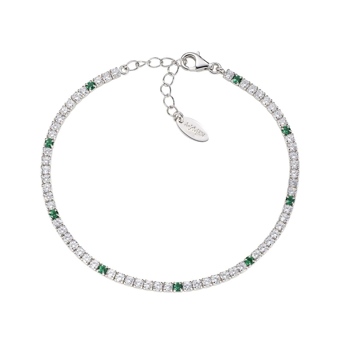 Bracciale unisex amen, BT7BVEB16, collezione tennis, in argento 925 rodiato con zirconi verdi e bianchi da 2 mm.