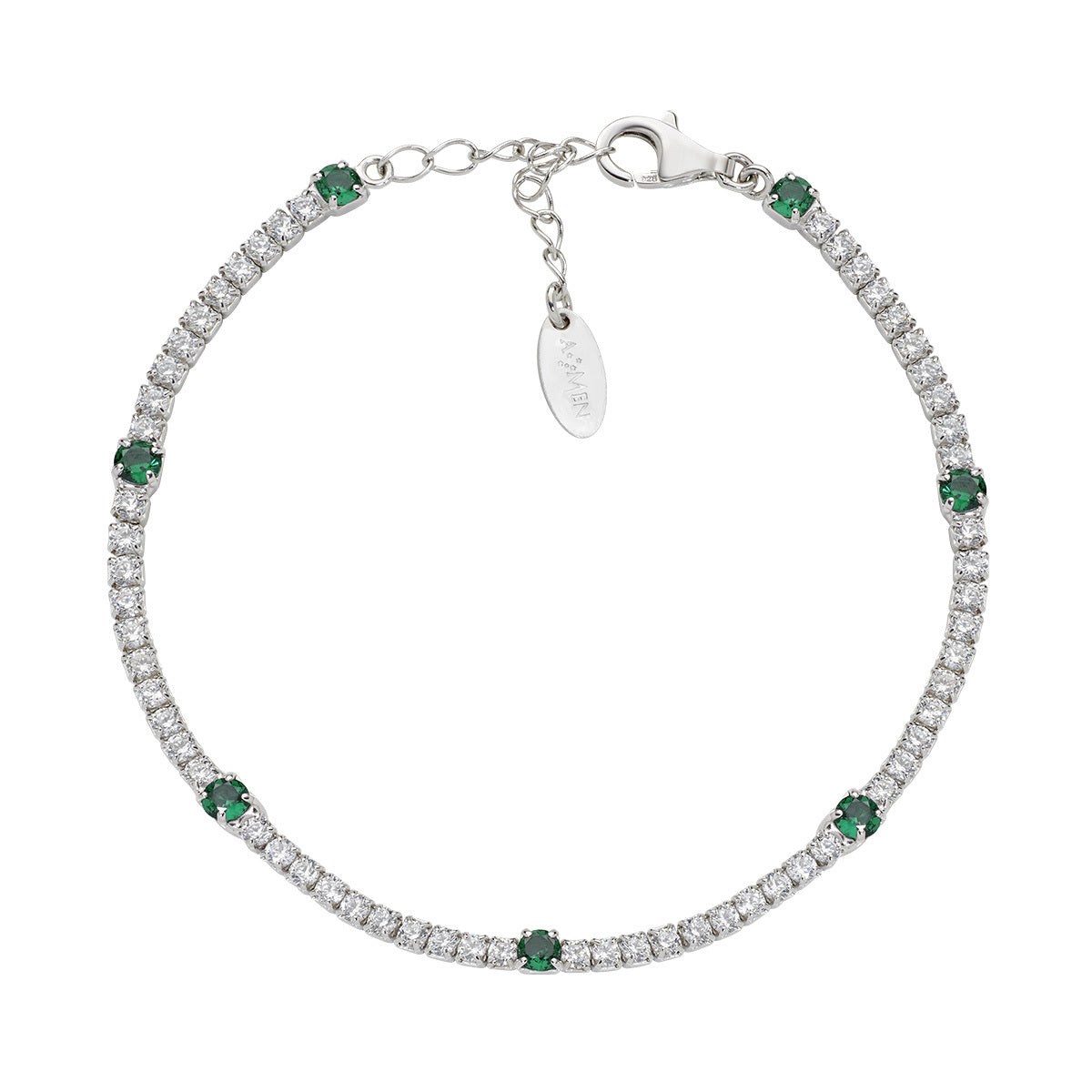 Bracciale donna amen, BTB2B3VE16, collezione tennis, in argento 925 con zirconi, lunghezza regolabile 16cm a 19cm