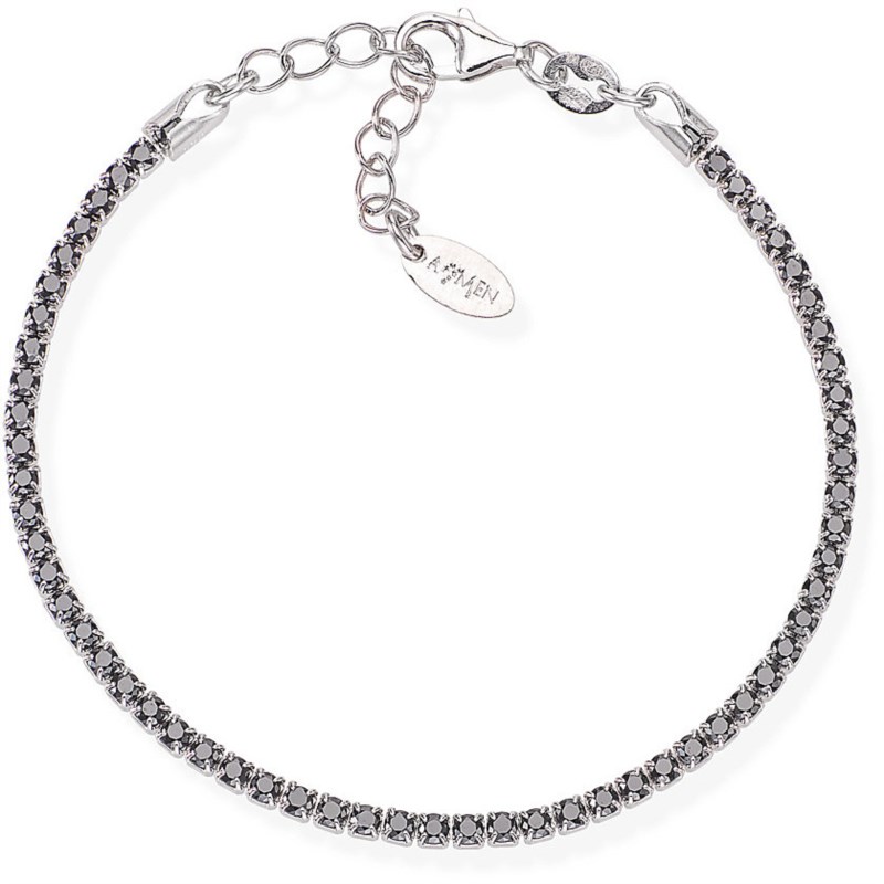 Bracciale donna amen, Btbn16, collezione tennis, in argento 925 con zirconi neri, lunghezza 16cm regolabile
