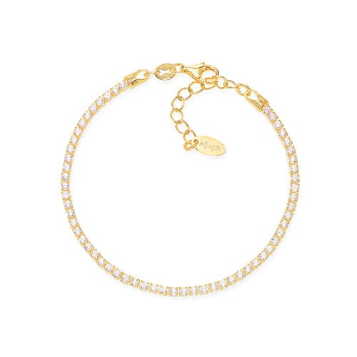 Bracciale donna amen, Btgb16, collezione tennis, in argento dorato 925 con zirconi, lunghezza 16cm regolabile