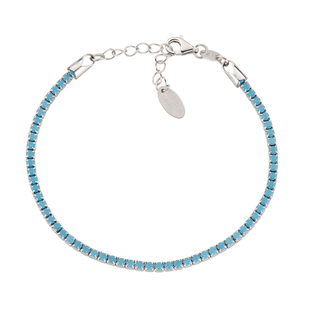 Bracciale donna amen, BTPBAZ18, collezione tennis, in argento 925 rodiato e turchese, lunghezza 18cm+3cm