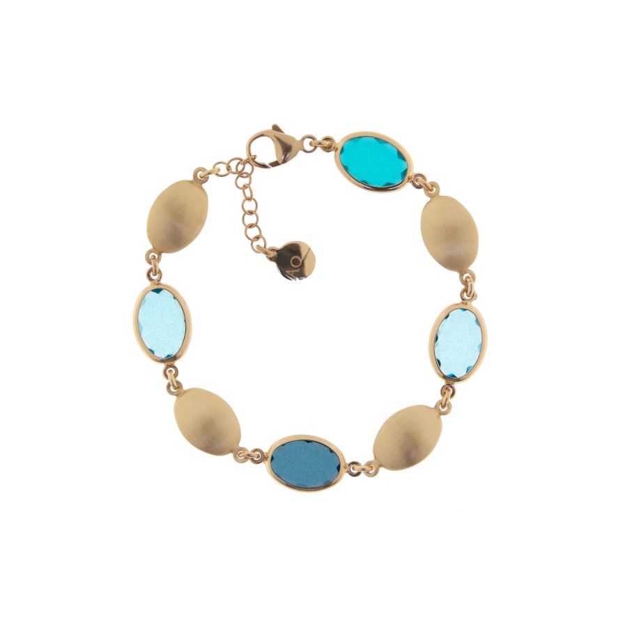 Bracciale donna aquaforte, H4182825, collezione caramelle, Bracciale con paste vitree ovali nei toni del petrolio in AG 925‰ placcato oro giallo 23 ct.