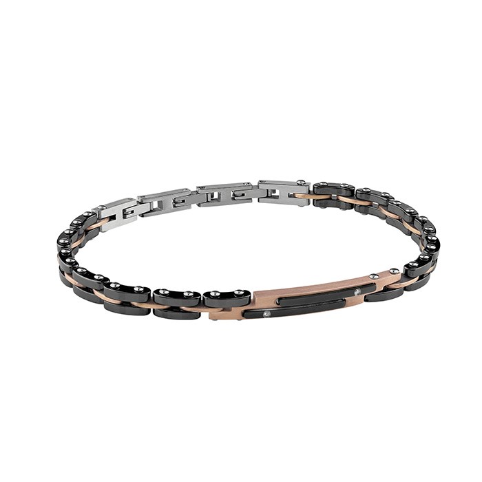 Bracciale uomo bliss, 20084167, collezione premiere, in acciaio/acciaio rosato con ceramica e zirconi bianchi, misura 22cm