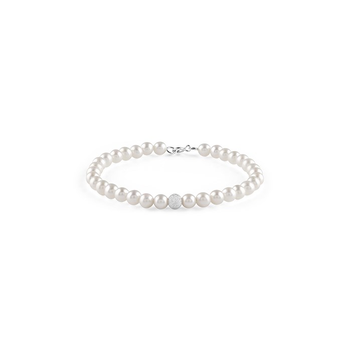 Bracciale donna bliss gioielli, 20109882, collezione shangri-la, in oro bianco 9kt Colore Perla: Bianco(white) Provenienza: Fiume/river gr.Perle: 7.25 Lunghezza cm: 18.0 Dim.
