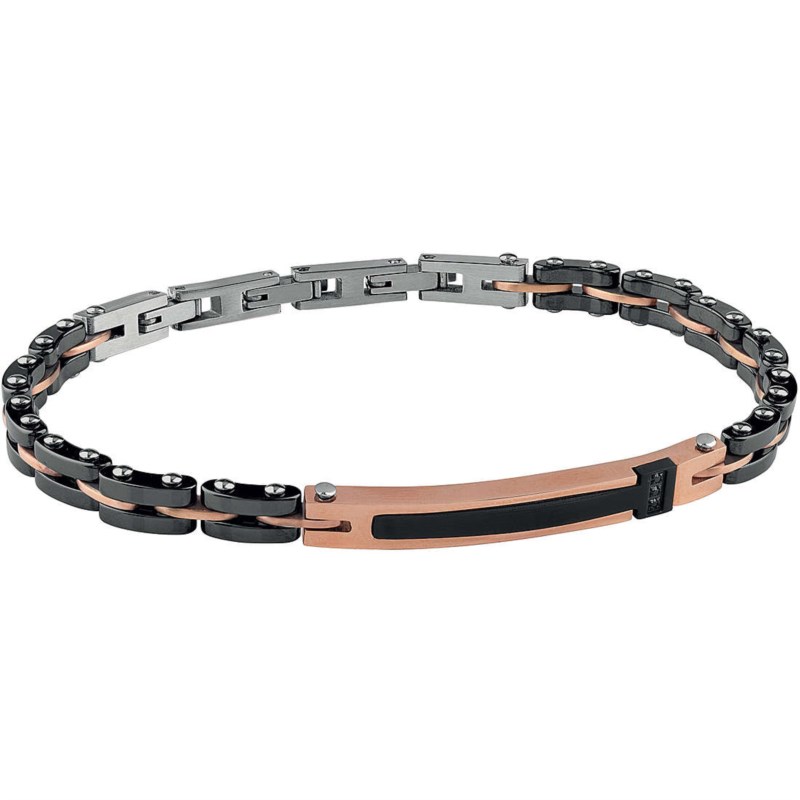 Bracciale uomo bliss, 20084166, collezione premiere, in acciaio, ceramica e zirconi