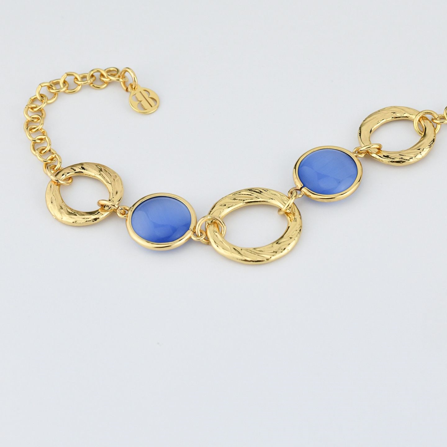 Bracciale donna boccadamo, XB1036DB, collezione crisette, in bronzo placcato oro giallo con cristalli effetto cabochon di colore blu marino tra moduli circolari martellati di diverse dimensioni. Misura: lunghezza cm 16, 5 estendibile fino a cm 20 Dimensione: cristalli cm 1, 5