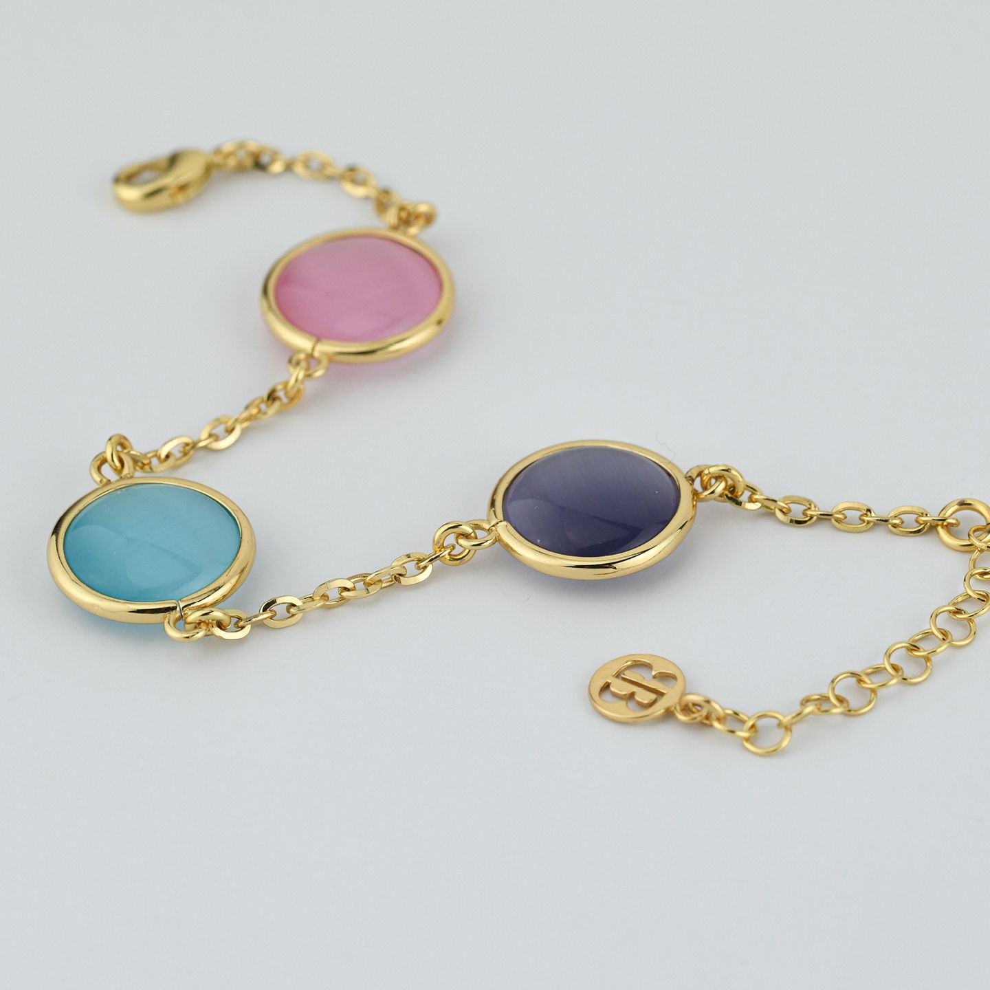 Bracciale donna boccadamo, XB1039DV, collezione crisette, in bronzo placcato oro giallo con cristalli rosa chiaro, celeste e viola scuro. Misura: lunghezza cm 16, 5 estendibile fino a cm 20 Dimensione: cristalli cm 1, 5