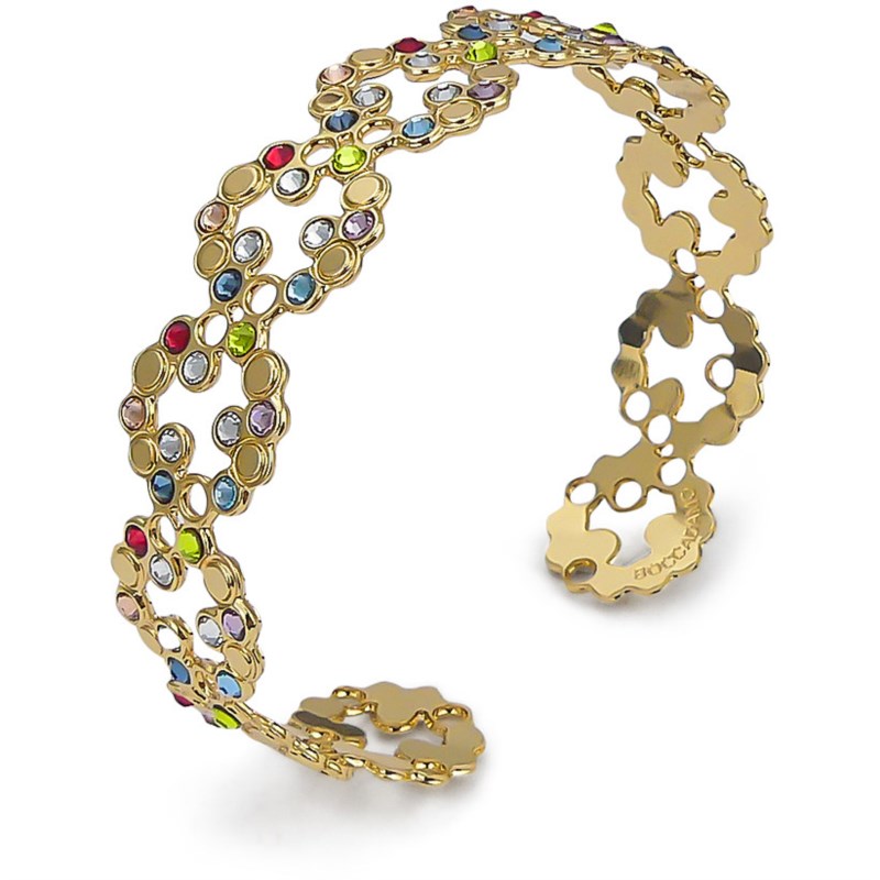 Bracciale donna boccadamo, XBR967D, collezione magic circle, in bronzo dorato e cristalli, diametro interno regolabile