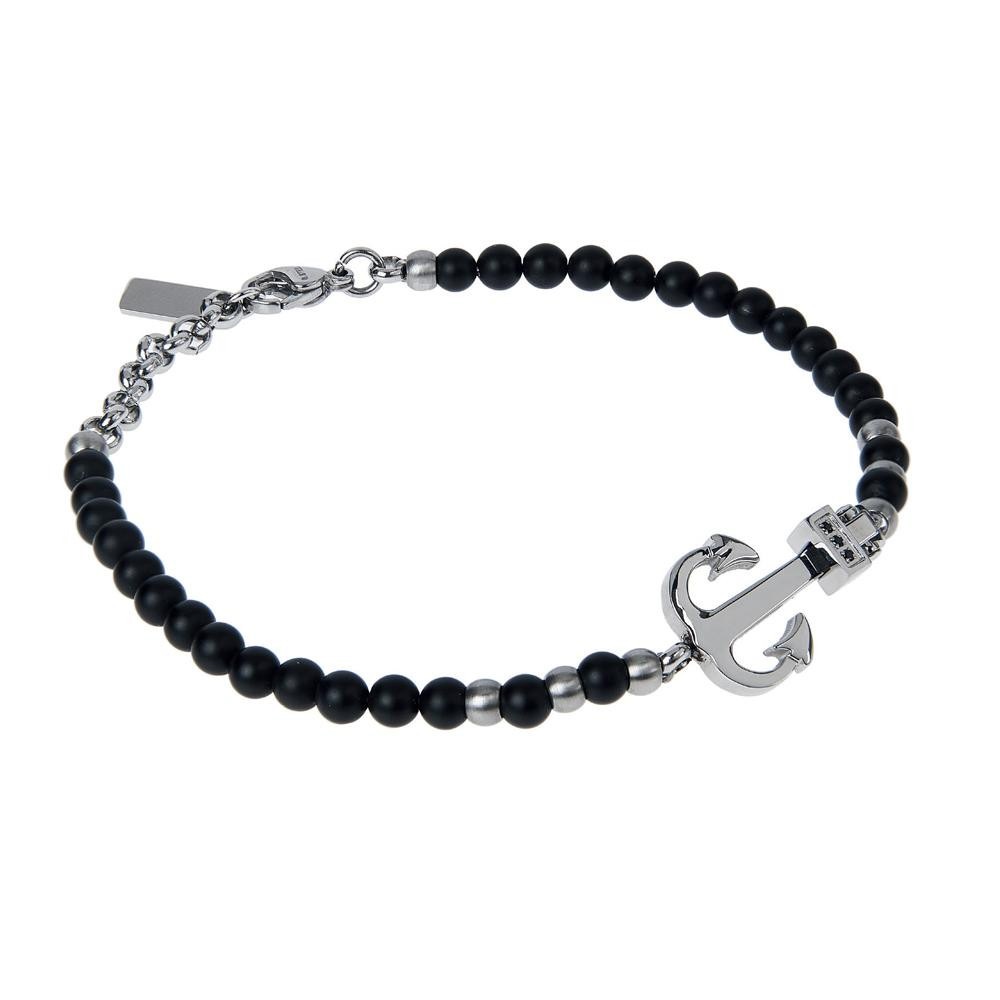 Bracciale uomo boccadamo, Abr467, collezione man, ; in acciaio, ossidiana e zirconi, lunghezza 18-21, 5cm
