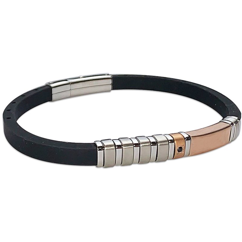 Bracciale uomo boccadamo, Abr593r, collezione man, in acciaio/acciaio rosato con gomma
