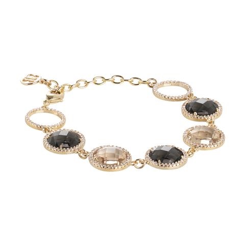 Bracciale donna boccadamo, Xbr399d, collezione sharada, novità; in bronzo placcato oro con cristalli e zirconi, lunghezza cm 16, 5, estendibile fino a cm 21.