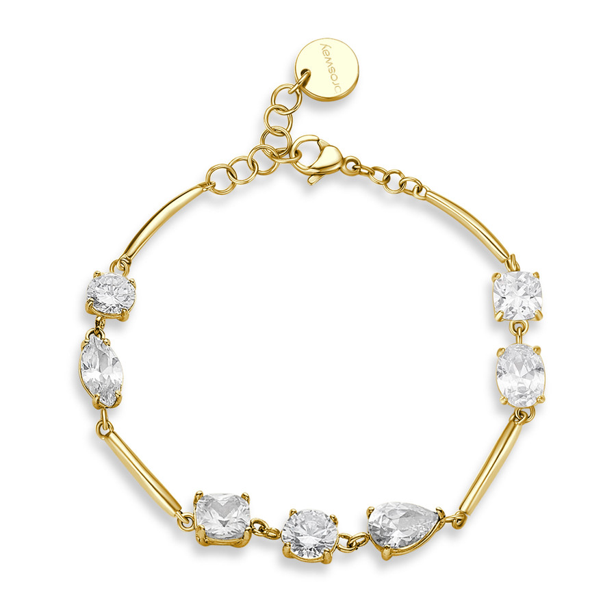 Bracciale donna brosway, BFF185, collezione affinity, in acciaio finitura oro 14k e zirconi, lunghezza 18cm