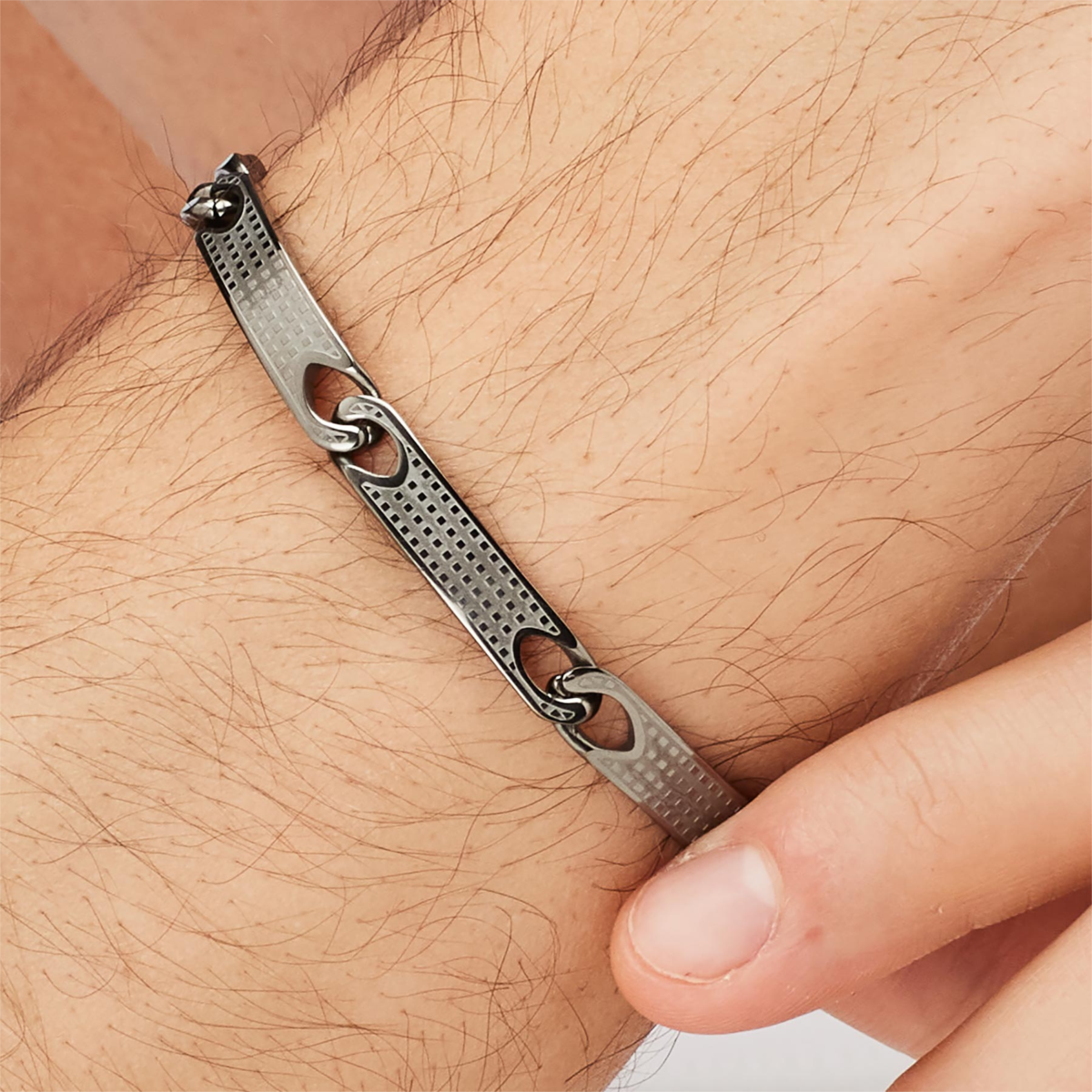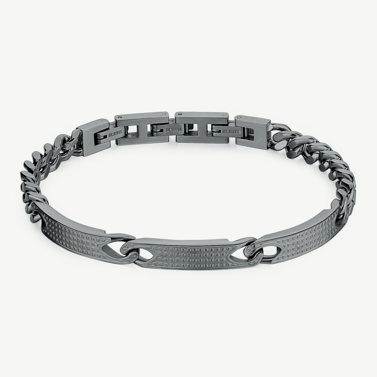 Bracciale uomo brosway, BUL58, collezione bullet, catena grumetta semirigido in acciaio 316L lucido e sabbiato con finitura pvd colore rutenio. lunghezza 21, 5cm