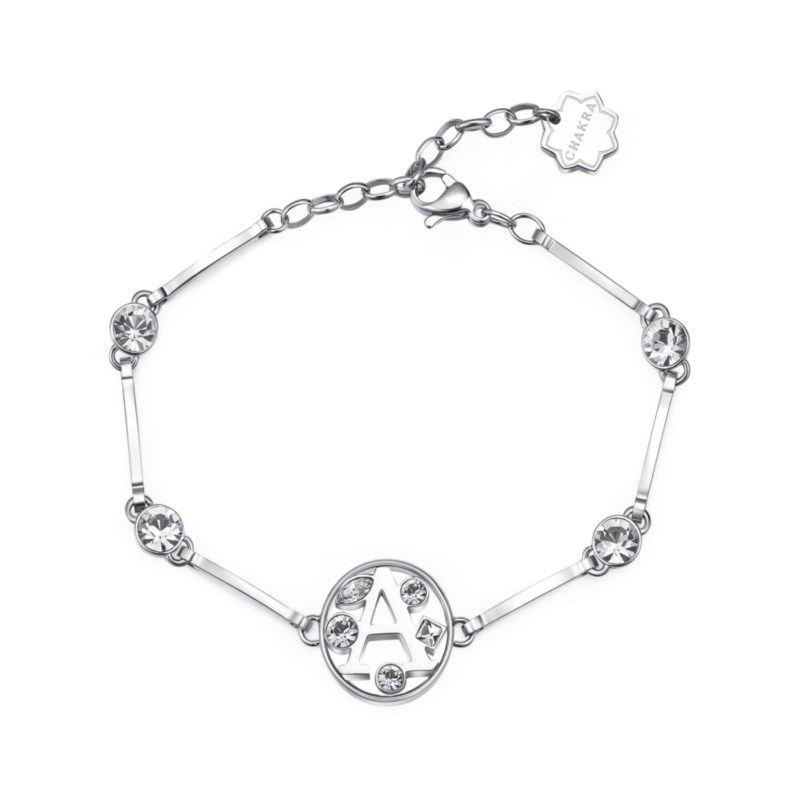 Bracciale donna brosway, Bhkb049, collezione chakra, in acciaio con cristalli swarovski, lettera a, misura 18, 5cm