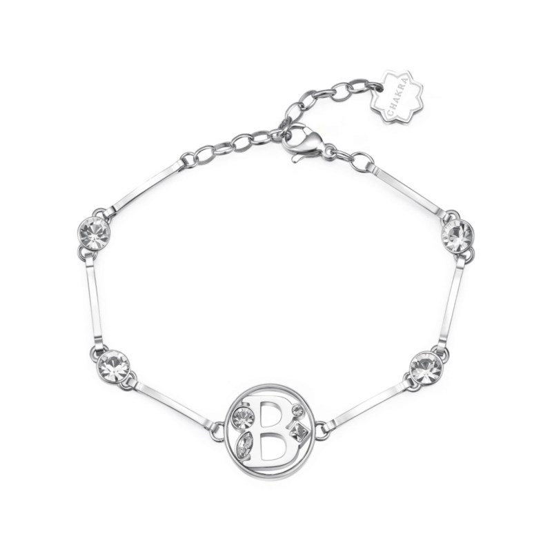 Bracciale donna brosway, Bhkb050, collezione chakra, in acciaio con cristalli swarovski, lettera b, misura 18, 5cm