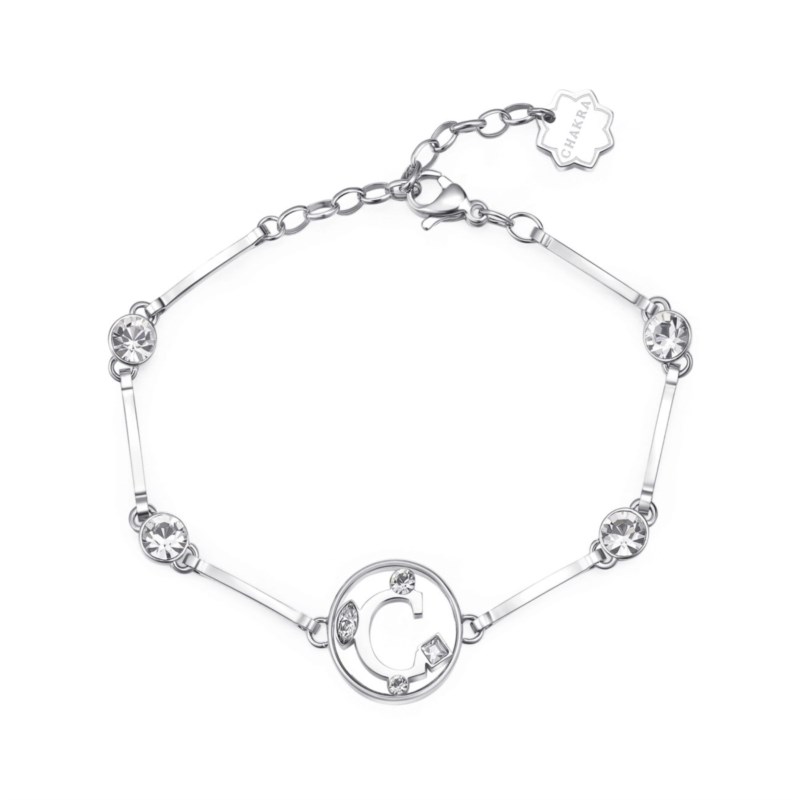Bracciale donna brosway, BHKB051, collezione chakra, in acciaio con cristalli swarovski, lettera c, misura 18, 5cm