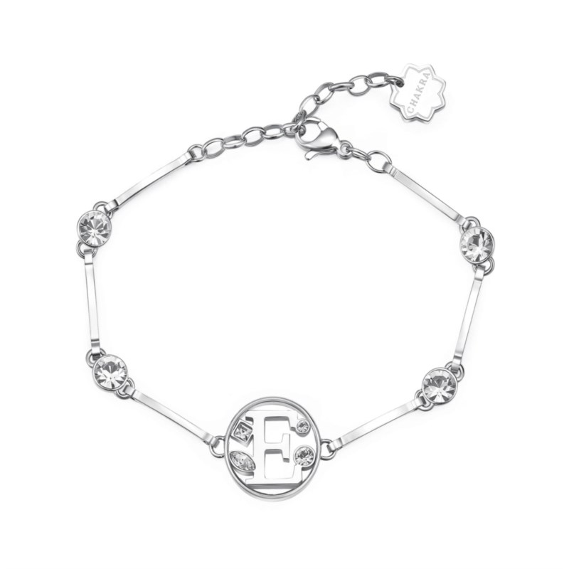 Bracciale donna brosway, Bhkb053, collezione chakra, in acciaio con cristalli swarovski, lettera e, misura 18, 5cm