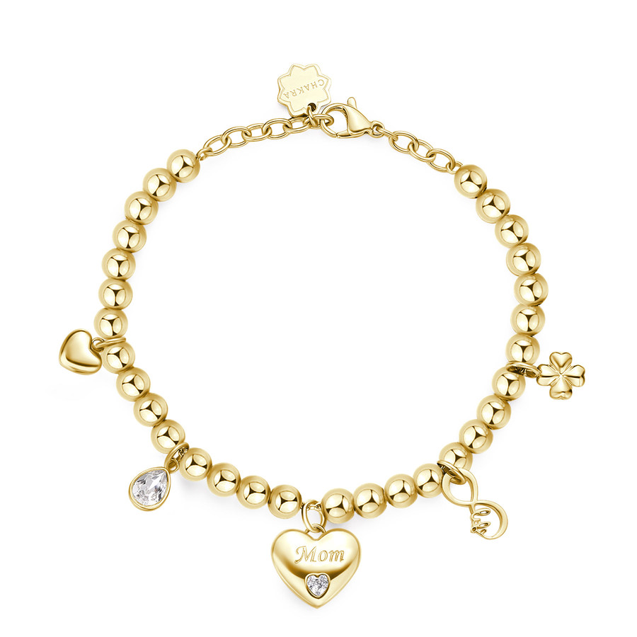 Bracciale donna brosway, BHKB166, collezione chakra, in acciaio finitura oro 14k e cristalli, lunghezza 18, 5cm