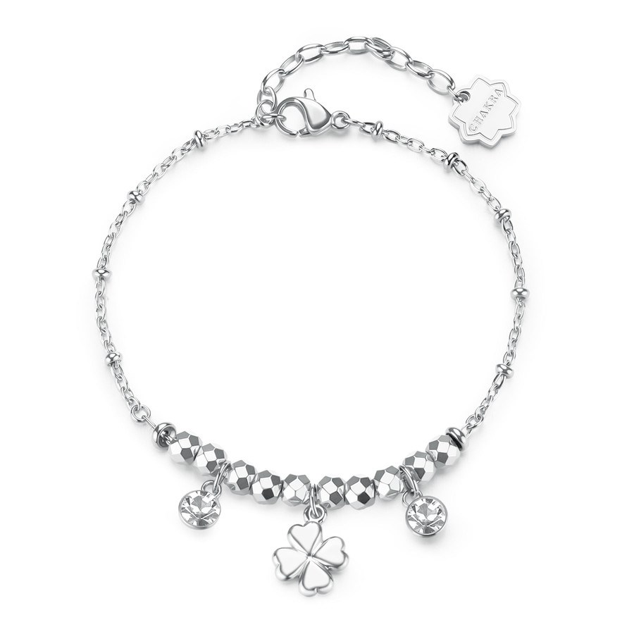 Bracciale donna brosway, BHKB265, collezione chakra, in acciaio 316L e pendenti con quadrifoglio e cristalli. lunghezza 19cm.
