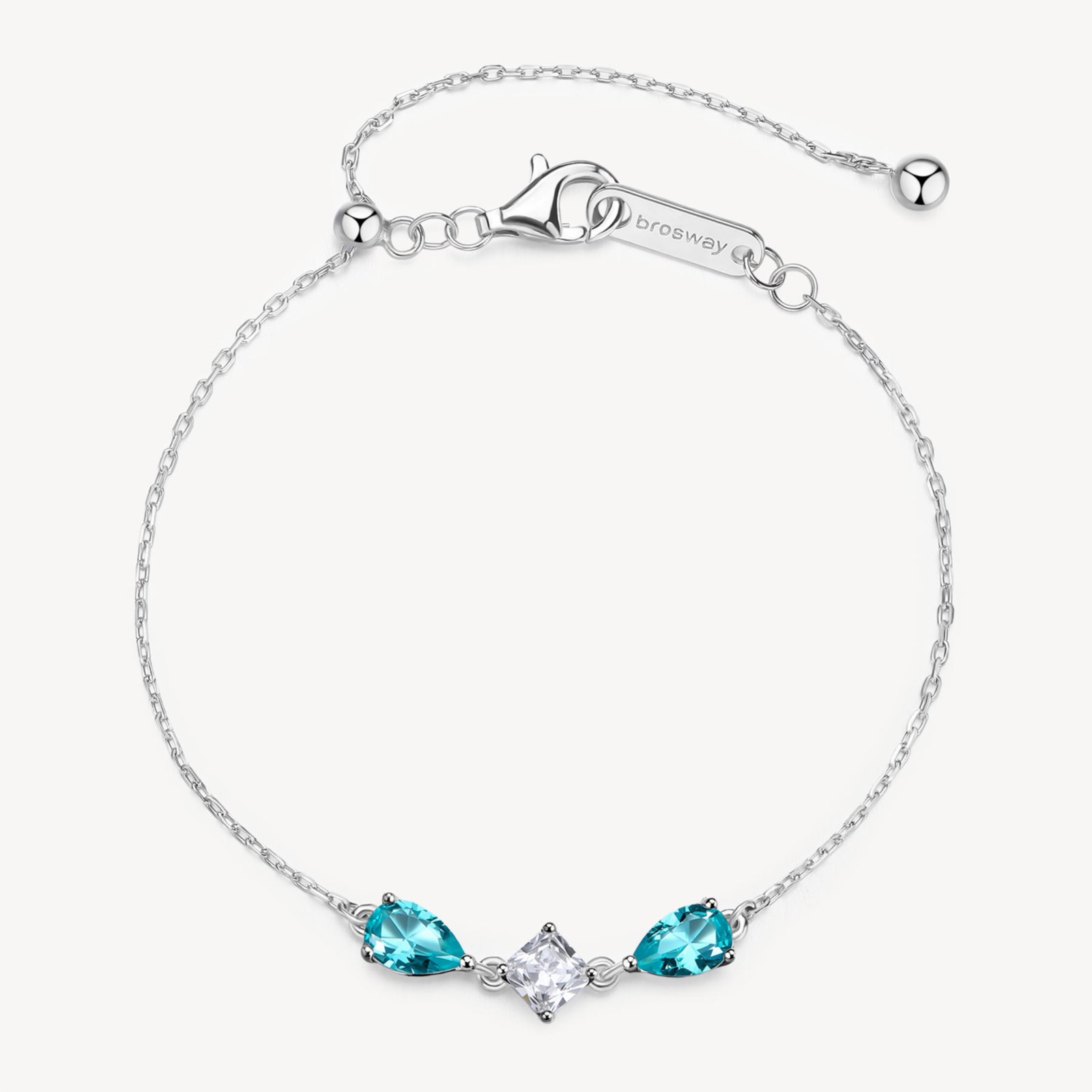 Bracciale donna brosway, FAG05, collezione fancy, in argento rodiato 925‰ con cubic zirconia chiari e pear cubic zirconia colore paraiba. lunghezza 18, 5cm.