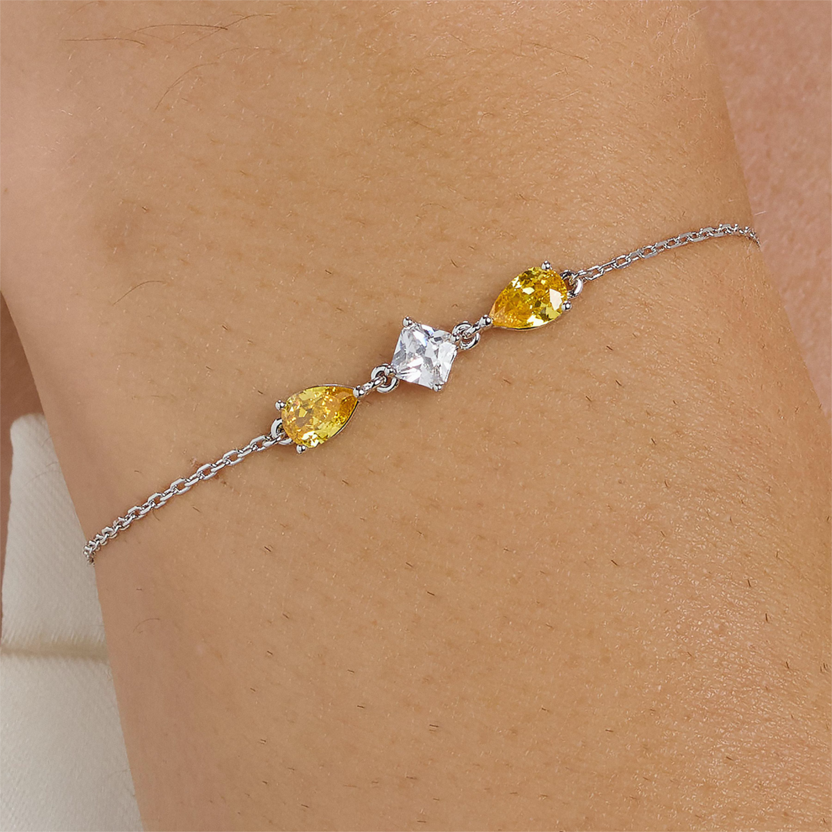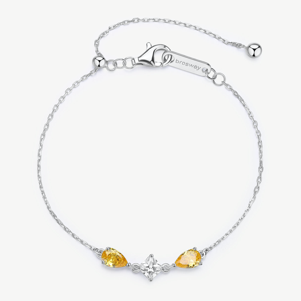 Bracciale donna brosway, FEY99, collezione fancy, in argento rodiato 925‰ con square cubic zirconia e pear cubic zirconia colore golden yellow. lunghezza 18, 5cm regolabile.