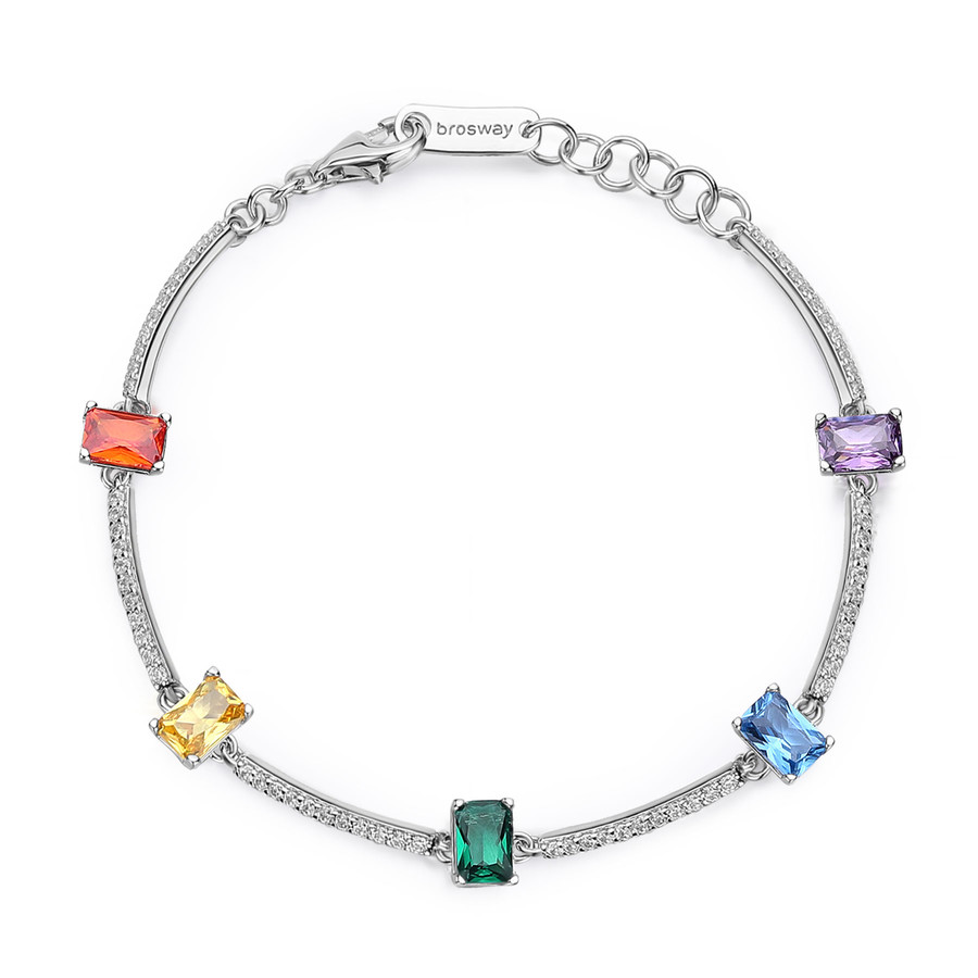 Bracciale donna brosway, FJR05, collezione fancy, in argento rodiato 925‰ e cubic zirconia multicolore, lunghezza 17, 5cm