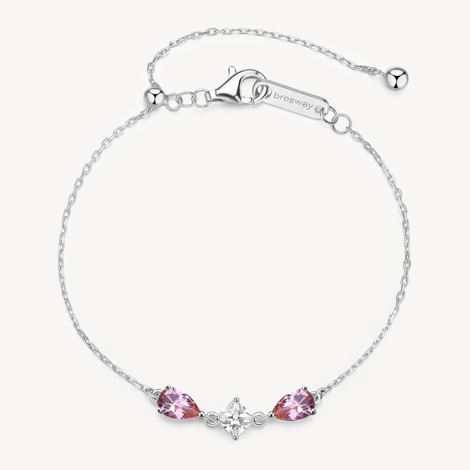 Bracciale donna brosway, FTP05, collezione fancy, in argento rodiato 925‰ con cubic zirconia chiari e pear cubic zirconia colore vintage rose. Misura bracciale 18, 5cm