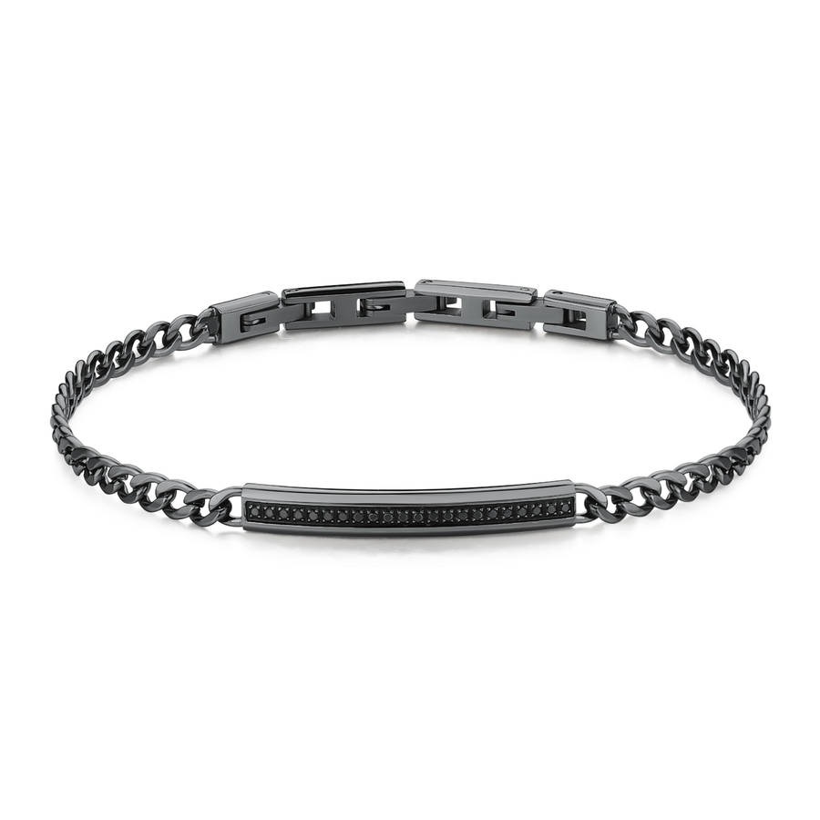 Bracciale uomo brosway, BIK112, collezione link, in acciaio nero e zirconi